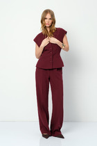 Брюки-лосины из трикотажного полотна с начёсом. По талии отрезной пояс. По спинке кокетка и накладные карманы. Спереди нефункциональные карманы и гульфик. По переду вдоль лосин защип-имитация лампаса. По деталям двойная отстрочка.