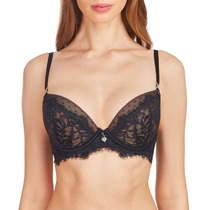Бюстгальтер классической формы с формованной чашкой с гелевым Push-up. Детали изделия выполнены из эластичного кружева. Бретели эластичные, съемные. Центральная деталь декорирована бантиком из атласной ленты.