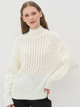 Вязаный джемпер из акриловой пряжи, переплетения гладь. Втачной длинный рукав. По низу рукава и изделия манжеты. Округлая горловина с бейкой. По переду косы.