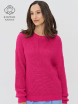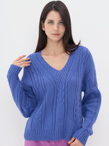 Вязаный джемпер умеренного объема из акриловой пряжи с добавлением шерсти, переплетение гладь. Втачной длинный рукав, по горловине отложной воротник с функциональной планкой и пуговицами. По низу изделия и рукавов манжеты.