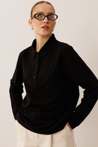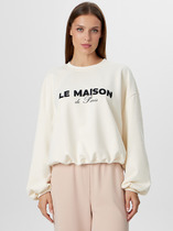 Вязаный джемпер умеренного объема из хлопковой пряжи с добавлением акрила. Короткий рукав со спущенной линией плеча. Длина рукава до локтя. Округлая горловина с бейкой. На детали переда нашивка.