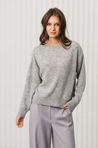 Джемпер свободного кроя из вискозного трикотажного полотна. Округлая горловина с обтачкой. Цельнокроеный рукав длиной 3/4. По переду и спинке отстроченные резы. По спинке средний шов. По бокам небольшие разрезы. Спереди принт фольга.