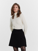 Вязаный джемпер свободного кроя из хлопковой пряжи с добавлением акрила, переплетение гладь. V-образный вырез горловины с бейкой. Короткий рукав со спущенной линией плеча. Боковые разрезы. По низу изделия и рукавов узкие манжеты.