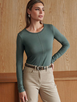 Вязаный джемпер прямого силуэта из вискозной пряжи с добавлением нейлона. Длинный втачной рукав. Основное переплетение гладь. Округлая горловина с бейкой. По низу изделия и рукавов узкие манжеты, нашивка металл.