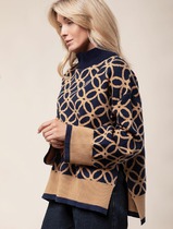 Vilatte Свитер с боковыми разрезами жаккардовой вязки с кашемиром D34.147 синий-
