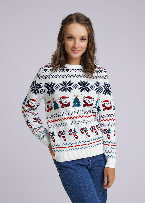 Вязаный джемпер из акрила с жаккардовым переплетением. Длинный втачной рукав. Круглый вырез горловины.