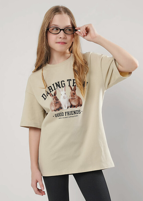 Clever Футболка детская для девочки CLE 866899г_п1 бежевый