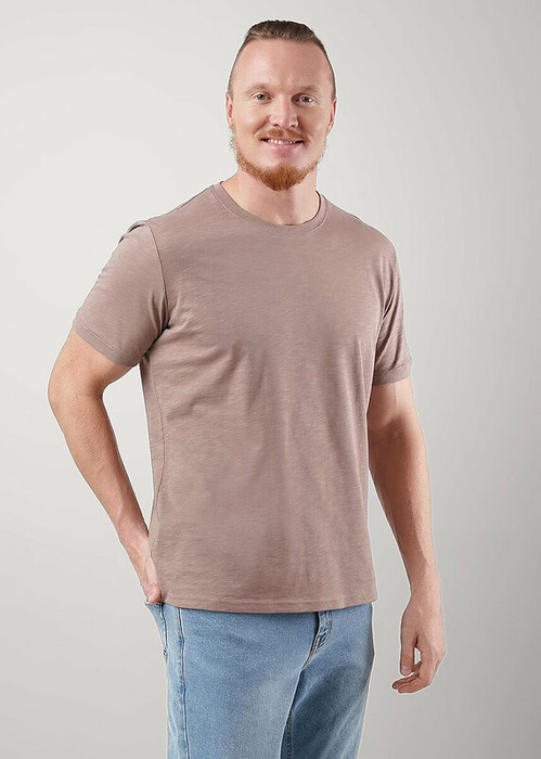 Футболка мужская с округлой горловиной и коротким втачным рукавом из фактурного полотна ""флам"". Изделие дополнено имиджевым принтом в цвет полотна. Данная модель прекрасно комбинируется с джинсами или шортами благодаря своей универсальности.