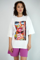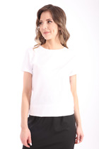 Джемпер умеренного объема из хлопкового трикотажного полотна. Втачной короткий рукав. Округлая горловина с окантовкой.