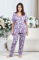 Халат для дома и отдыха на запах с поясом, из хлопкового трикотажного полотна с добавлением модала. Рукав длиной 3/4 со спущенной линией плеча. По горловине и борту полочек обтачка.