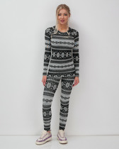 Согревающий комплект из рибаны с карбоном и эффектом меланжа. Благодаря своему крою изделие плотно прилегает к телу, не сковывает движений и подчеркивает силуэт.Низ джемпера украшает жаккардовая нашивка с силиконовой печатью. Леггинсы плотно облегают бёдра и ноги по всей длине. Без боковых швов и цельнокроеным поясом с эластичной резинкой внутри.