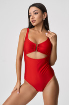 Костюм купальный женский из полиамида с эластаном. Лиф с круглыми чашечками с косточками, с завязками вокруг шеи, на магнитной застежке, трусы бикини на высокой посадке.