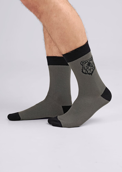 Мужские носки с выделенным мыском и пяткой и рисунком на паголенке голова медведя