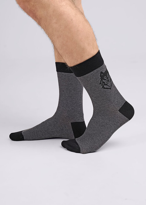 Мужские носки с выделенными мыском и пяткой с рисунком голова волка на паголенке