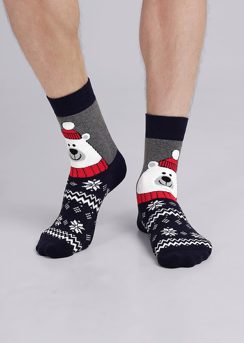 мягкие плюшевые Новогодние мужские носки со скандинавским орнаментом и рисунком белого медведя
