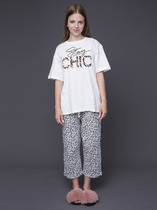 Новогодняя пижама для подростков,состоящая из футболки и брюк. Футболка свободного кроя спереди украшена тематическим принтом. Брюки прямые среднего объема с эластичным поясом.