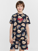 Комплект хлопковой пижамы из футболки и шорт. Футболка свободного кроя дополнена эластичной горловиной и стильным принтом. Шорты среднего объема, эластичный пояс обеспечит комфорт и идеальную посадку.