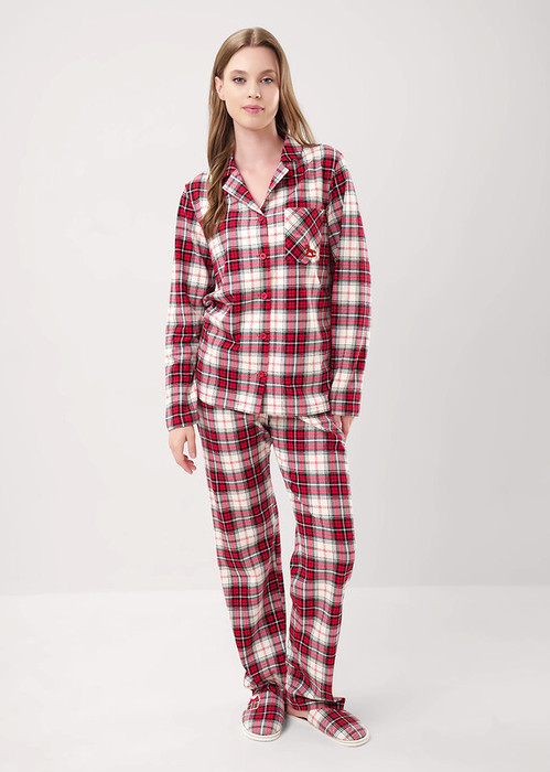 Пижама для дома из хлопкового трикотажного полотна с карбоном. Джемпер с длинным втачным рукавом. Застёжка на пуговицы, воротник с лацканами. По переду накладной карман, нашивка. Боковые разрезы. Брюки прямые, цельнокроенный пояс на внутренней резинке.