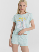 Пижама для дома из хлопкового трикотажного полотна. Футболка прямого кроя, округлая горловина с обтачкой из кашкорсе. По бокам разрезы. Короткий втачной рукав. Шорты прямого кроя, пояс на внутренней резинке.