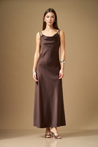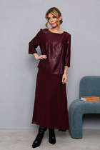 Платье полуприлегающего силуэта из трикотажного полотна с блеском. Округлая горловина. Длинный втачной рукав, по низу рукава разрезы. По переду рельеф со сборкой на резинку и разрезом. По спинке средний шов с застёжкой на молнию.