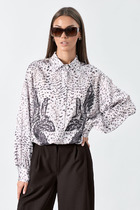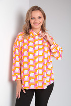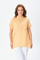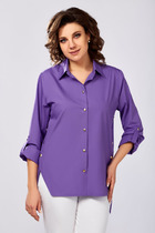 Блузка из текстильного полотна лен с вискозой,прямого силуэта. Длинный рукав со спущенной линией плеча, по низу манжет с разрезом. По борту цельновыкроенная планка с застежкой на пуговицы, по горловине отложной воротник со стойкой. По бокам разрезы.