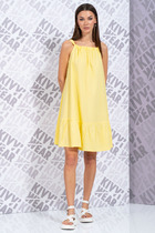 Сарафан из текстильного полотна штапель-креп. Свободного кроя, длиной мини. По горловине внутреняя обтачка, широкая бретель. По спинке средний шов.