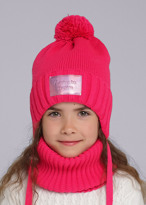 Десткая шапка для девочки с завязками и ниточным помпоном. Декорирована стильной нашивкой в центральной части. Утеплена флисовым подкладом по всей голове. Идеально подойдёт для холодной зимы.