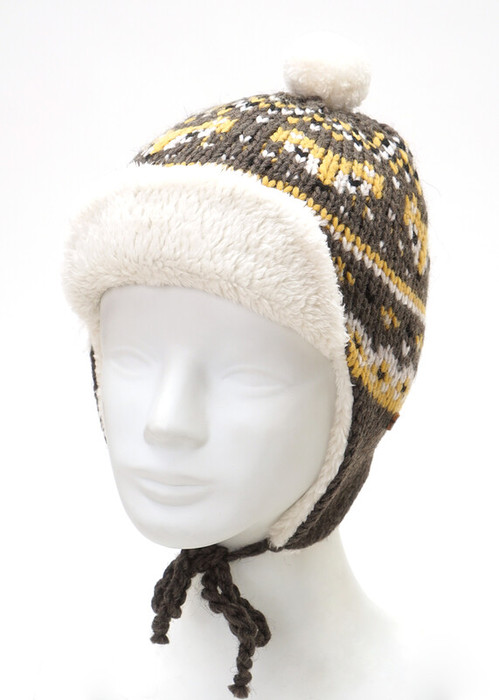Трендовая графика в вязаном жаккарде "лисы". Шапка-ушанка с утеплением из искусственного меха и декоративным помпоном