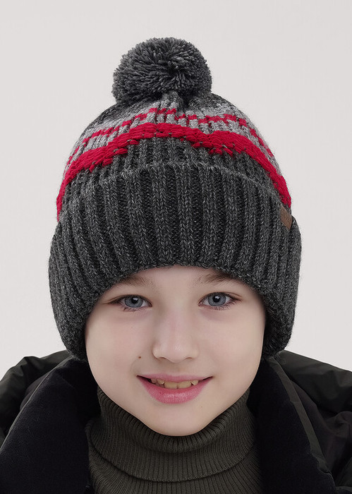 Clever Шапка детская для мальчика CLE 454390ап флис меланж т.серый/красный