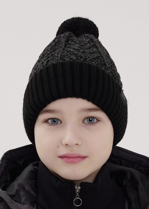 Clever Шапка детская для мальчика CLE 454456ап флис чёрный/меланж т.серый