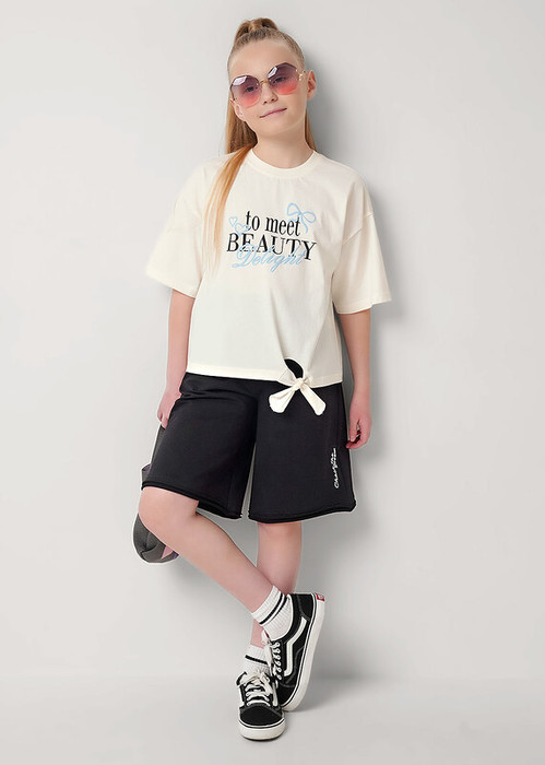Удлиненные шорты для девочки с эластичной резинкой на поясе и регулировкой для идеальной посадки. Практичные карманы сбоку. Оригинальный необработанный двойной край по низу придаёт модели стильный вид. Идеальны с футболками из новой коллекции!