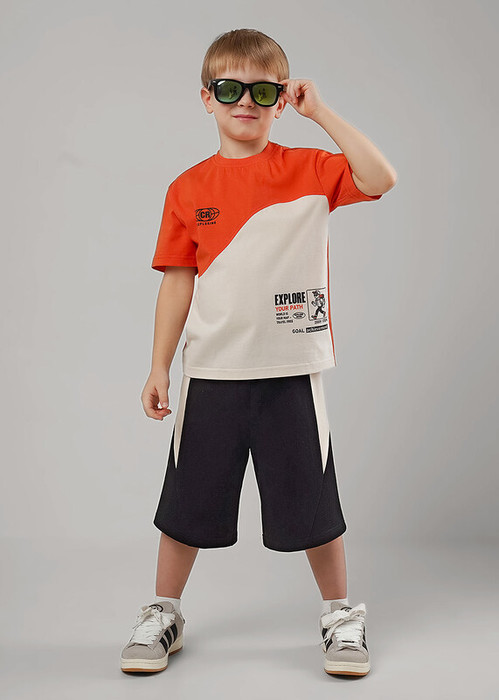 Стильные шорты из 100% хлопкового футера с контрастными боковыми вставками и регулируемым поясом на резинке — комфортный выбор для активного мальчика.Натуральный материал обеспечивает отличную воздухопроницаемость,а продуманный крой не стесняет движений.