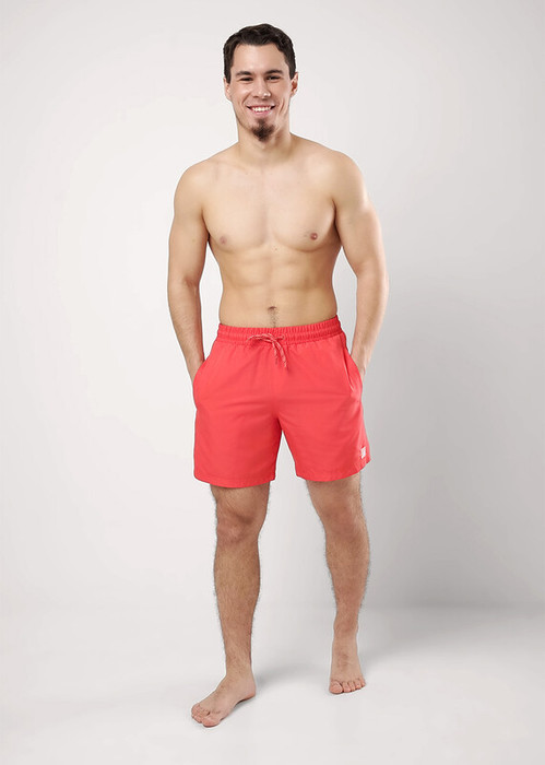 Однотонные мужские купальные шорты с подкладом-плавками из мягкой сетки. Для функциональности предусмотрен широкий пояс, карманы и регулируемый шнур. Данная модель шорт хорошо подходит для плавания и пляжного отдыха.