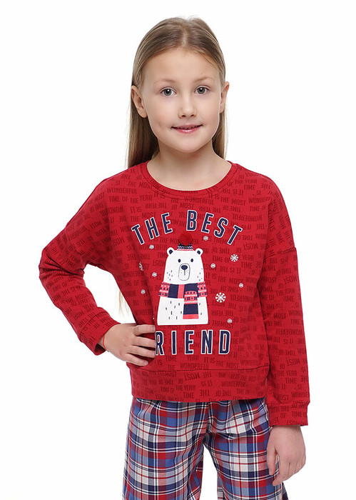 24.03 Clever Свитшот для девочки CLE LSW18-730/1 красный/т.красный