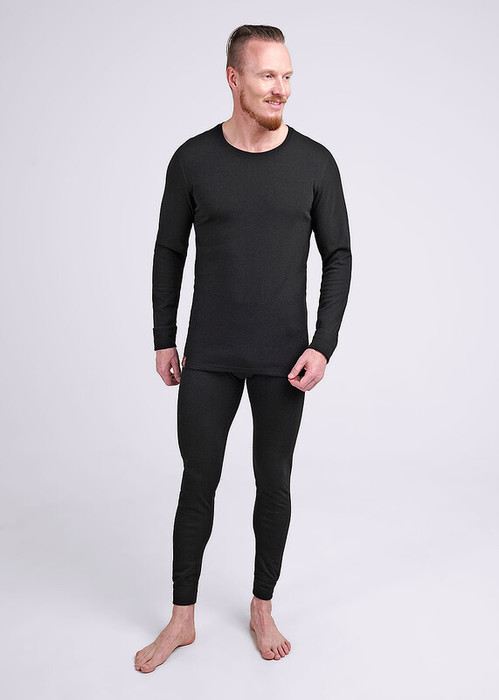 Джемпер комфортного кроя с удлиненной спинкой, благодаря эластичному полотну и широким манжетам, хорошо облегает фигуру и очень удобен в носке. Джемпер оформлен контрастной отделкой горловины и каучуковым логотипом.Кальсоны из полотна с начесом, дополнены фирменной резинкой-кантом, манжетой по низу ножки.