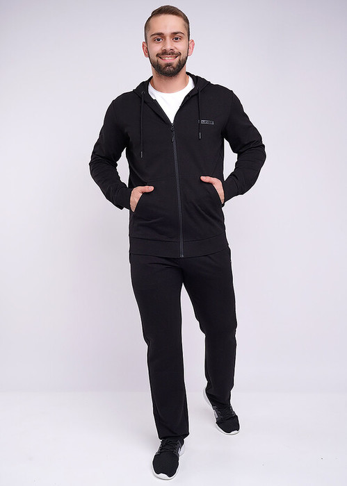 Модная куртка с капюшоном на молнии из плотного трикотажного полотна будет незаменимой вещью в гардеробе любого мужчины, благодаря функциональным карманам "кенгуру" и стильной отделке в виде нашивок.