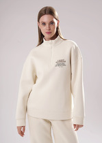 Джемпер спортивный свободного силуэта из трикотажного полотна футер с начесом ""тедди"". По горловине стойка с молнией. Спереди и по спинке кокетка наизнанку. Длинный рукав со спущенной линией плеча, по низу манжет. Внизу изделия притачной пояс.