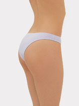 Трусы бикини женские из эластичного хлопкового полотна. Обработка краев по талии - ажурная резинка, по ноге - п/окантовка.