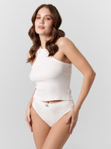 Трусы бикини, изготовлены из однотонного эластичного полиамидного полотна. Края изделия обработаны лазером, благодаря чему нити не распускаются. Модель не заметна под облегающей одеждой, прекрасно держит форму, но при этом отличается эластичностью.