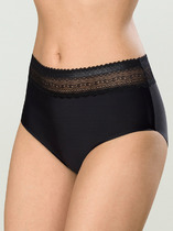 Трусы-макси женские из плотного эластичного хлопкового полотна. Обработка краев - обтачками из основного полотна с плоским швом. По переду декоративные резы и вставки из кружева.