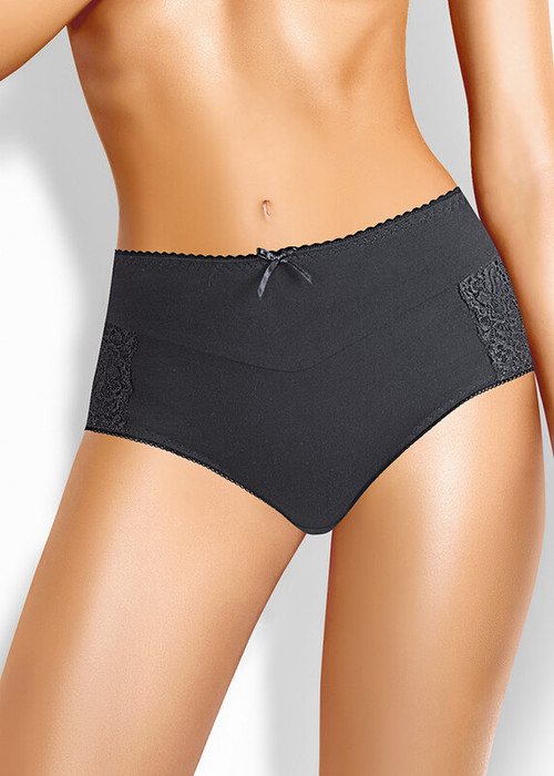 Трусы макси из хлопкового полотна с добавлением эластана комфортной посадки. На детали переда и спинке по бокам вставки из широкого кружева. По поясу и ножке резинка с фестоном.