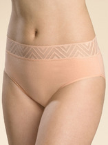 Трусы-шорты женские из эластичного хлопкового полотна. Спинка и вставки по переду из кружева. Обработка краев по талии - ажурной резинкой с фестоном. Спереди бант.