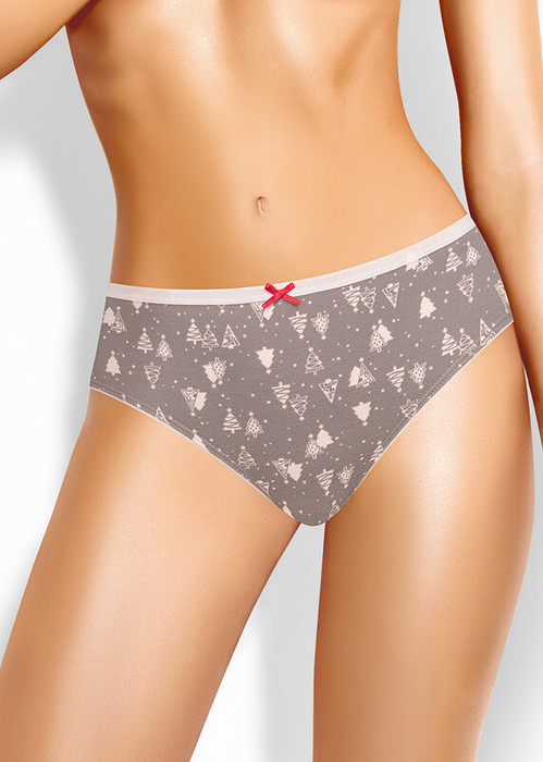 Трусы слипы женские из эластичного хлопкового полотна. Обработка краев по талии - окантовочная резинка, по ноге - полуокантовка. По переду атласный бант.