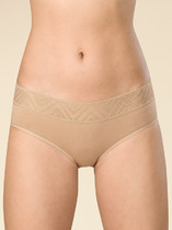 Трусы слипы с завышенной посадкой, сзади и по линии бикини бесшовная гладкая обработка, спереди декоративные диагональные вставки из плотной сетки, перед дублирован сеткой, по талии обработка с зигзагом и узкой резинкой