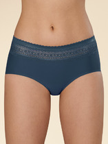 Трусы слипы с завышенной посадкой, сзади и по линии бикини бесшовная гладкая обработка, спереди декоративные диагональные вставки из плотной сетки, перед дублирован сеткой, по талии обработка с зигзагом и узкой резинкой