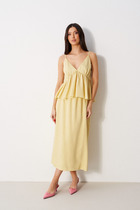Юбка миди слегка расклешенного силуэта из поливискозного трикотажного полотна джерси. По талии пояс на резинке. По переду и спинке расстроченный средний шов.