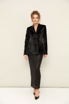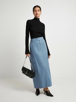 Юбка миди прямого силуэта из поливискозного трикотажного полотна джерси. По талии внутренняя резинка. На спинке средний шов с застежкой на молнию, внизу шлица.