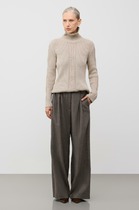Водолазка на кулирной глади с лайкрой. Модель с длинным втачым рукавом, обработанным вподгибку. Горловина обработана воротником-стойкой, по низу - подгибка.