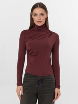 Водолазка на кулирной глади с лайкрой. Модель с длинным втачым рукавом, обработанным вподгибку. Горловина обработана воротником-стойкой, по низу - подгибка.