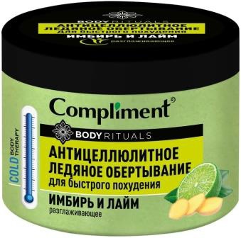 Compliment Body Rituals Антицеллюлитное ледяное обертывание Имбирь и лайм благодаря которому вы сможете восстановить упругость кожи, добиться желаемого похудения, подчеркнуть сторойность своего тела. Крем для похудения расщепляет подкожные жиры, корректирует объём тела и придает ровность и гладкость коже рук, ног и тела.